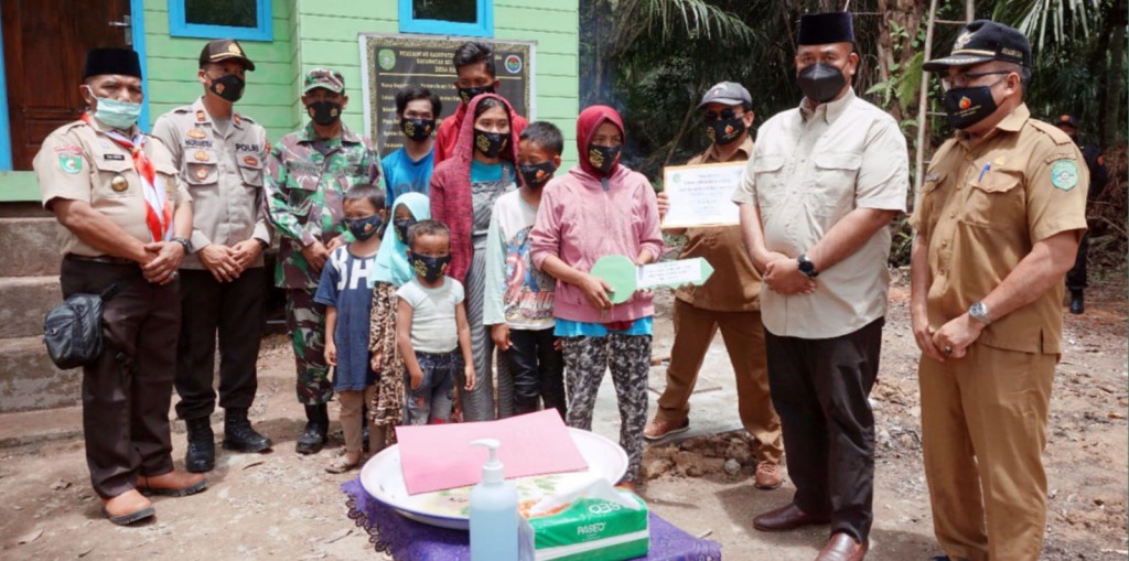 Terletak di jalan Mulawarman, RT 016 Desa Hambau, bangunan rumah berukuran 4 x 6 Meter diserahkan bupati Edi Damansyah salah satu penerimanya bernama Jumiati didampingi Kepala Desa Hambau Ekamansyah.