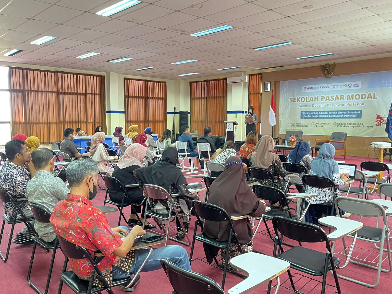 KaltimKita.com, BALIKPAPAN - Bursa Efek Indonesia perwakilan Kaltim melakukan kunjungan ke Politeknik Negeri Balikpapan. Kunjungan tersebut dalam hal sosialisasi sekolah pasar modal untuk seluruh dosen dan karyawan di Gedung Direktorat Lantai Tiga, Kamis (2/3/2023).