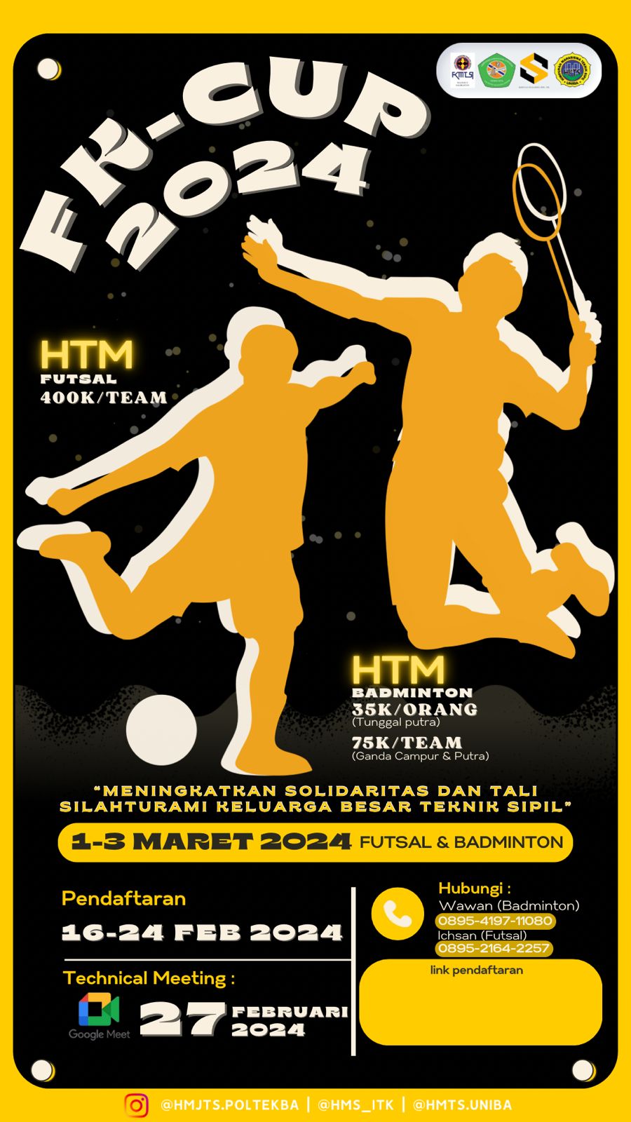 KaltimKita.com, BALIKPAPAN - Pesta olahraga bagi kalangan mahasiswa se-Kaltim akan bergulir. Melalui Himpunan Mahasiswa Jurusan (HMJ) Teknik Sipil Politeknik Negeri Balikpapan akan menggelar turnamen badminton dan futsal bertajuk FK Cup 2024. Berlangsung pada 1-3 Maret 2024.