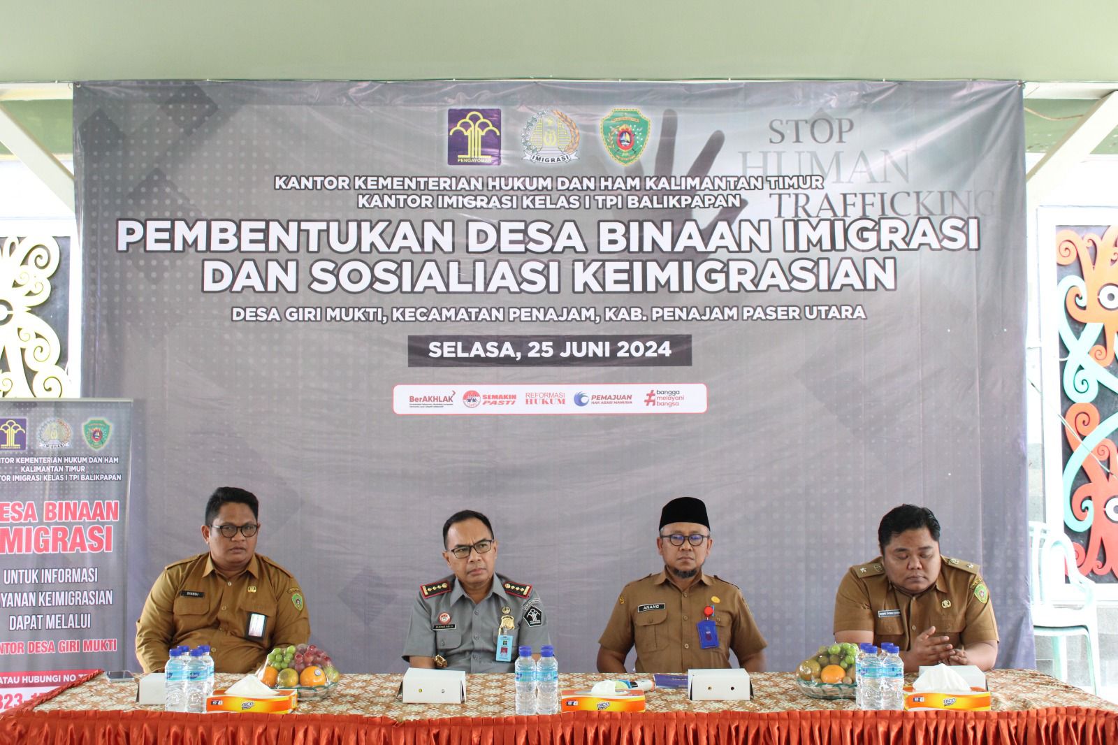 Pj Bupati Penajam Paser Utara, Makmur Marbun, dalam sambutannya yang dibacakan oleh Sekretaris Kesbangpol Kabupaten Penajam Paser Utara, Anang Budiyanto, mengapresiasi langkah Kantor Imigrasi Kelas I TPI Balikpapan dalam pembentukan Desa Giri Mukti sebagai Desa Binaan Imigrasi.