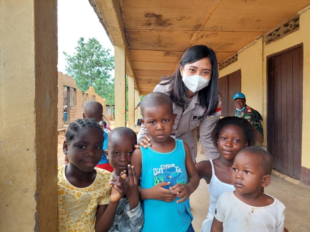 Briptu Ayu Saidevy foto bersama anak-anak Bangui