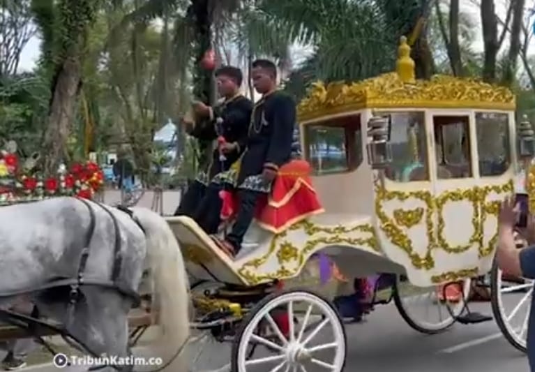 Mereka diarak dengan Kereta Garuda Kencana. Kereta itu pemberian Pangeran Haryo (GBPH) Yudhaningrat atau Gusti Yudha dari Keraton Yogyakarta, Februari tahun lalu. Diiringi juga kuda pattuddu’ dan kirab budaya Mandar. Undangan juga dihibur dengan penampilan Ratu Dangdut Elvi Sukaesih, Nassar, dan Titi Dj.