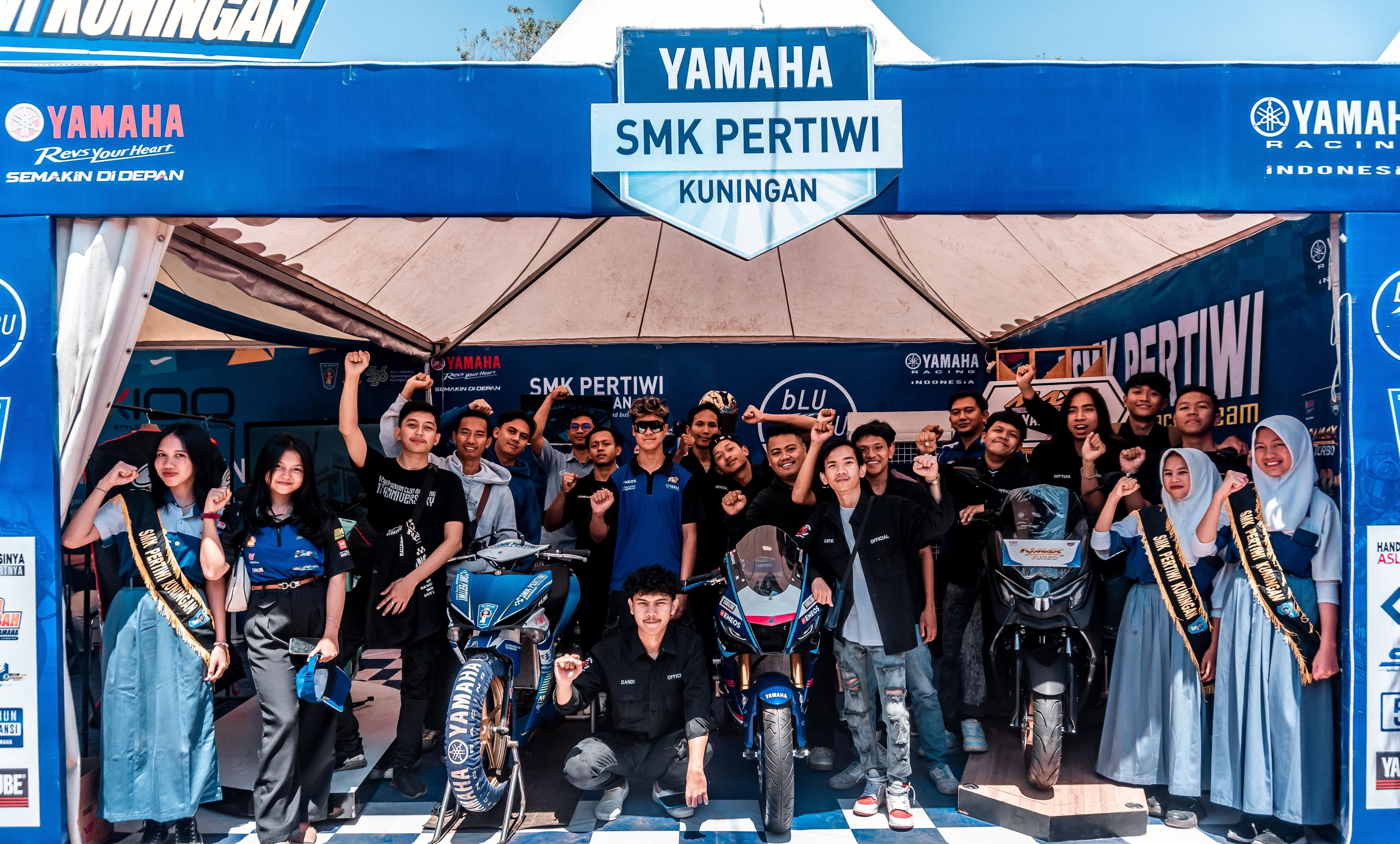 ”Popularitas Yamaha sebagai pabrikan yang konsisten berkiprah di dunia racing ditandai dengan beragam prestasi yang ditorehkan tim dan pembalap di berbagai ajang. Di Indonesia juga mencetak pembalap-pembalap potensial yang membuktikan kejayaan Yamaha. Hal ini juga menjadi daya tarik bagi generasi muda di SMK yang bahkan membuka eskul balap bekerjasama dengan Yamaha. Seperti di SMK Pertiwi Kuningan, yang kali ini diberikan kesempatan istimewa mendapatkan ilmu langsung dari pembalap Yamaha Racing Indonesia, Aldi Satya Mahendra. Ini menjadi masukan inspiratif bagi para siswa untuk optimis terus mempelajari seputar dunia balap. Selain itu, turut disuguhkan teknik berkendara line up R Series yaitu R25 motor kompetitif yang kerap meraih kemenangan di ajang balapan. Dalam kesempatan ini juga, bekerjasama dengan SMK Pertiwi Kuningan, motor R25 racing dari Yamaha Racing Indonesia juga dipajang di booth di Pameran Pembangunan Kuningan Fair,” ungkap Fitri Agustadhi P, Chief Yamaha DDS 2.