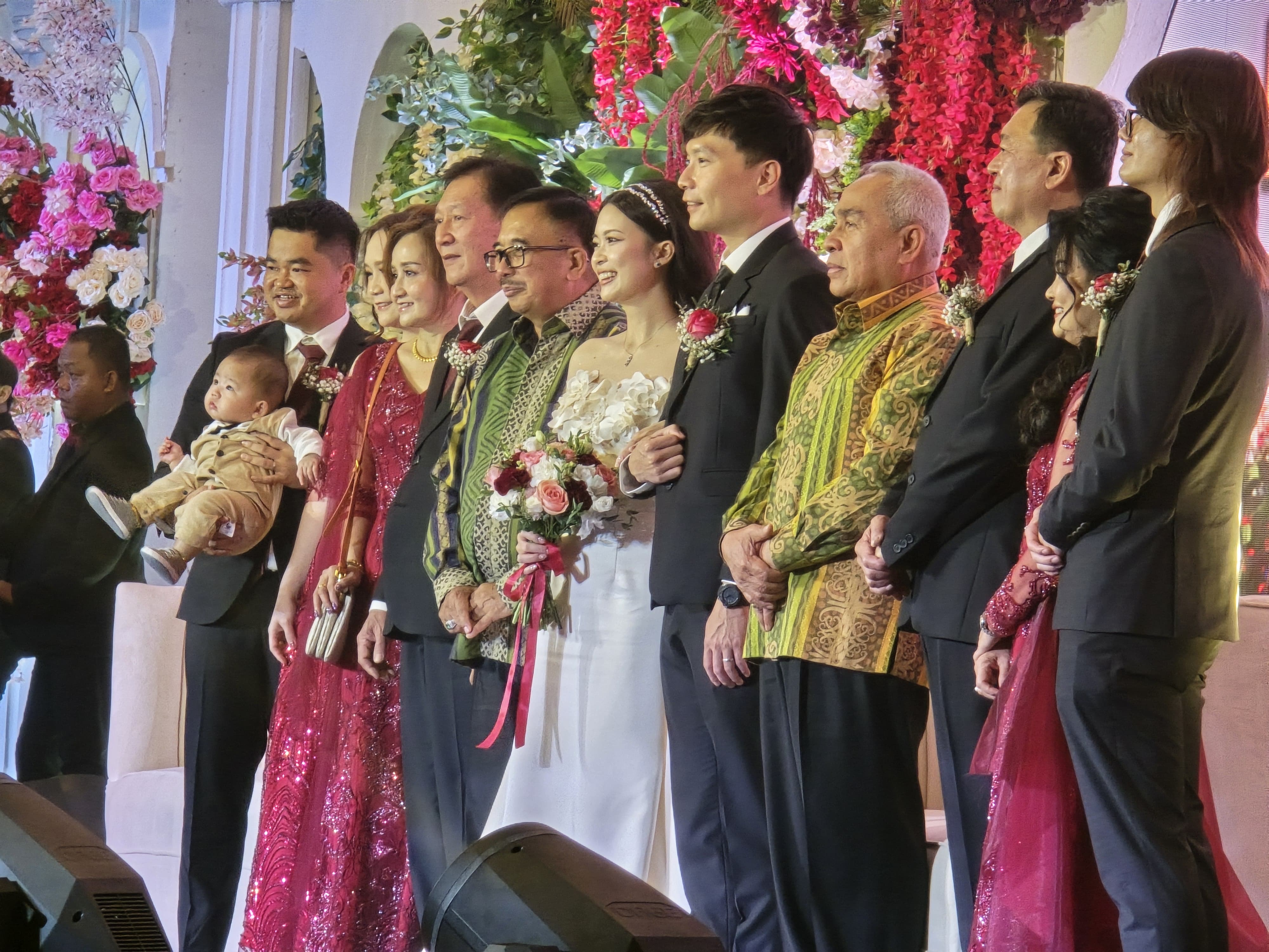 Isran berfoto dengan mempelai dan keluarga Andhika Hasan di Platinum Hotel.