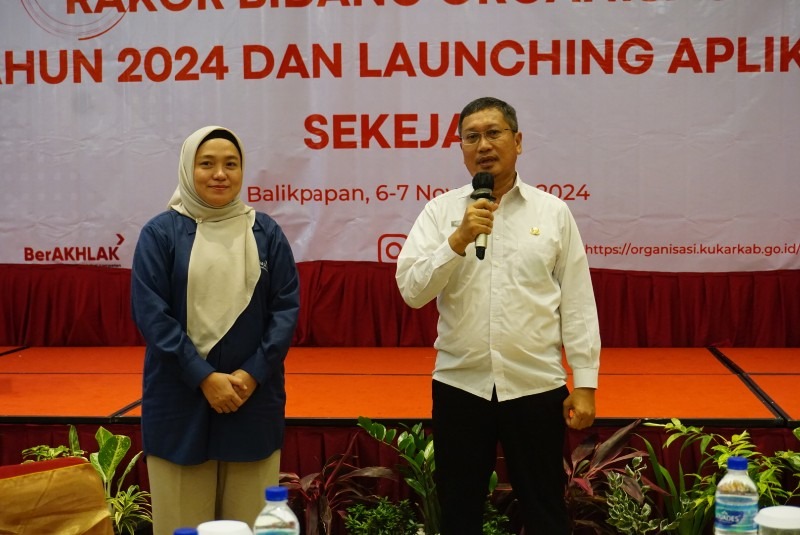 Kaltimkita.com, BALIKPAPAN - Asisten III bidang Administrasi Umum Pemerintah Kabupaten (Pemkab) Kutai Kartanegara (Kukar) Dafip Haryanto buka rapat koordinasi bidang organisasi se-Kukar dan meresmikan peluncuran Aplikasi Sistem evaluasi kelembagaan dan analisis jabatan (Sekejab), pada Rabu (6/11/2024) di Grand Ballroom Hotel Maxone Balikpapan.