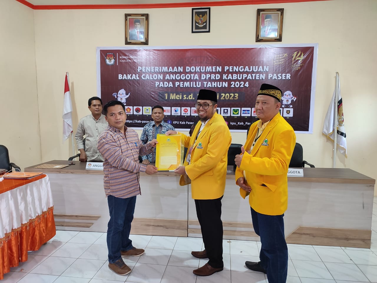 KaltimKita.com, TANA PASER - DPD Partai Golkar Kabupaten Paser mendaftar ke Komisi Pemilihan Umum (KPU) Paser untuk mengikuti pesta demokrasi serentak pemilu legislatif (pileg) 2024 di hari terakhir pendaftaran 14 Mei 2023.