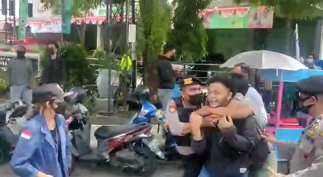 Suasana panas, membuat aksi yang dilakukan mahasiswa ricuh. Bentrokan dengan aparat kepolisian pun terjadi.