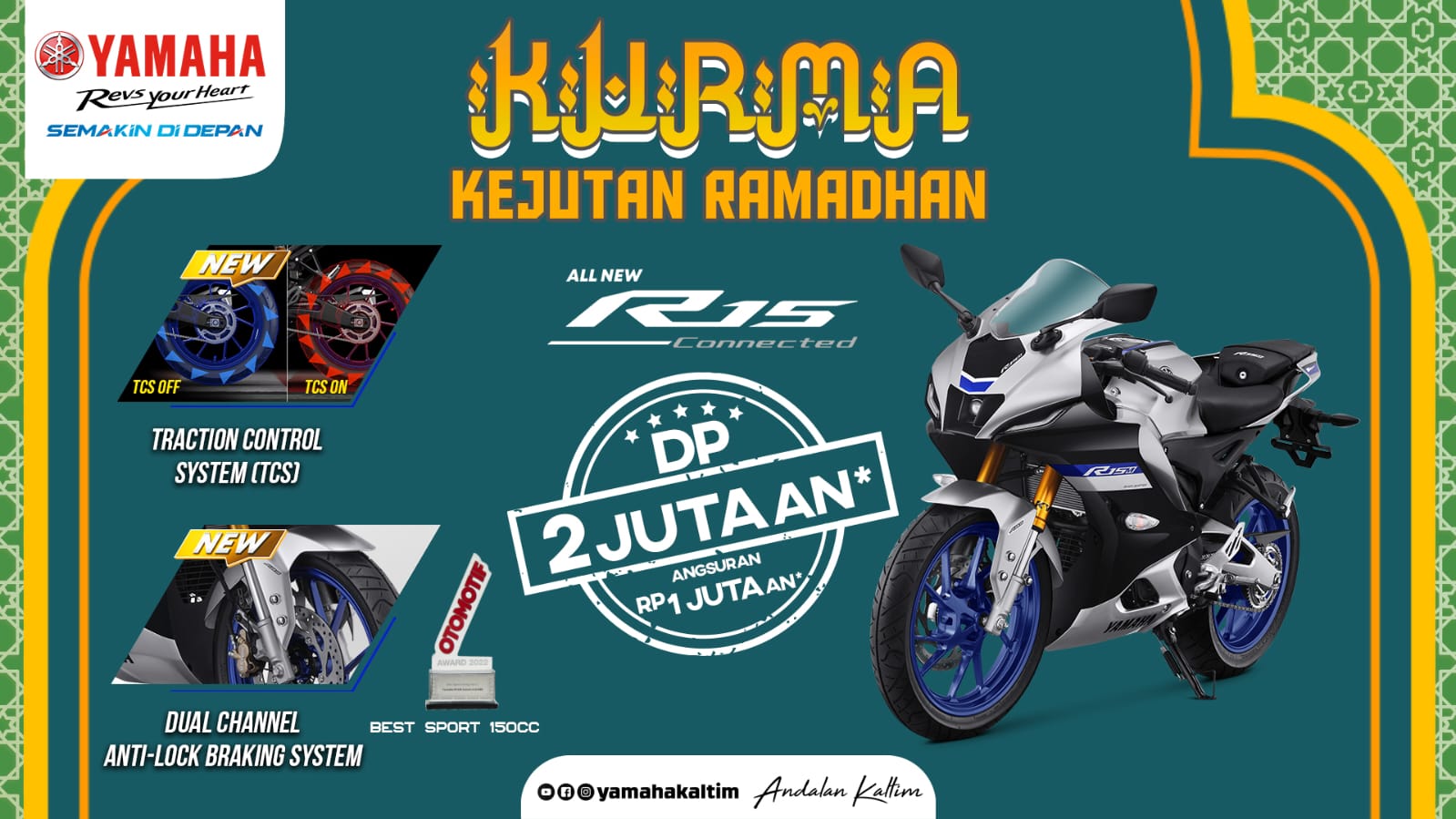 Ya, melalui program “Kurma” alias Kejutan Ramadan, Yamaha Lover khususnya motor sport dapat memiliki dan membawa pulang motor sport impian kalian yakni All New R15 Connected. Efendy Ariadi selaku asisten manajer PT. Surya Timur Sakti Jatim (STSJ) main dealer Yamaha area Kaltim, menjelaskan jika para pecinta motor sport Yamaha gak usah galau dan khawatir menyambut lebaran Idulfitri 1443 H. Pasalnya dengan program “Kurma” alais Kejutan Ramadan ini Yamaha Lover bisa membawa pulang All New R15 Connected tanpa harus merogoh kocek yang dalam.