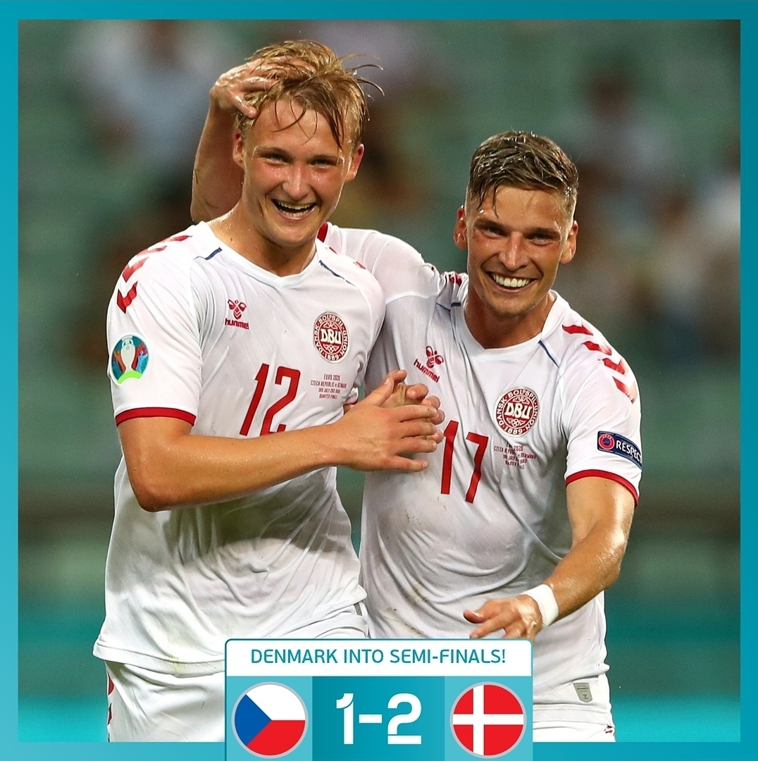 Gol cepat Thomas Delaney digandakan Kasper Dolberg sebelum turun minum, dengan Ceko hanya membalas melalui Patrik Schick di awal paruh kedua. Tim arahan Kasper Hjulmand itu tampil efektif dan efisien, melepaskan 13 tembakan dengan tujuh di antaranya on target. Sedang Republik Ceko punya 16 percobaan, hanya lima yang mengarah ke gawang.