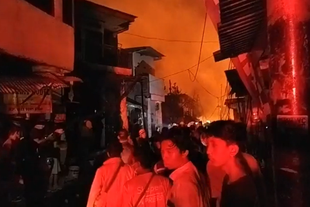 Dari video yang diperoleh wartawan di grup Humas Damkar, terlihat api berkobar. Api membumbung tinggi ke udara dibarengi kepulan asap tebal.