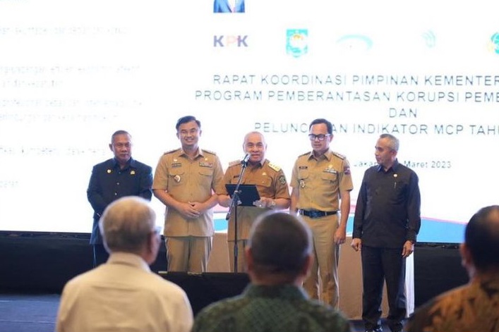 Kaltimkita.com, JAKARTA – Gubernur Kaltim H Isran Noor dalam kapasitas sebagai Ketua Umum Asosiasi Pemerintah Provinsi Seluruh Indonesia (APPSI) didaulat memimpin pembacaan komitmen antikorupsi kepala daerah dalam rangkaian Rapat Koordinasi Pimpinan Kementerian/Lembaga Program Pemberantasan Korupsi Pemerintah Daerah dan Peluncuran Indikator MCP Tahun 2023 di Ballroom The Ritz-Carlton Jakarta, Mega Kuningan, Selasa (21/3/2023).