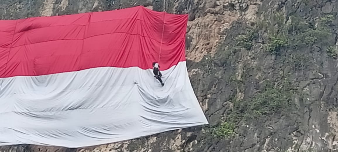 Kaltimkita.com, PASER - Berbagai cara dapat dilakukan dalam menyemarakkan peringatan HUT ke-76 Republik Indonesia. Seperti yang dilakukan kelompok pencinta alam Laskar Rimba Merah Putih bersama Kejaksaan Negeri Paser. Dengan membentangkan bendera merah putih raksasa di Tebing Sesubang, Kecamatan Muara Komam.