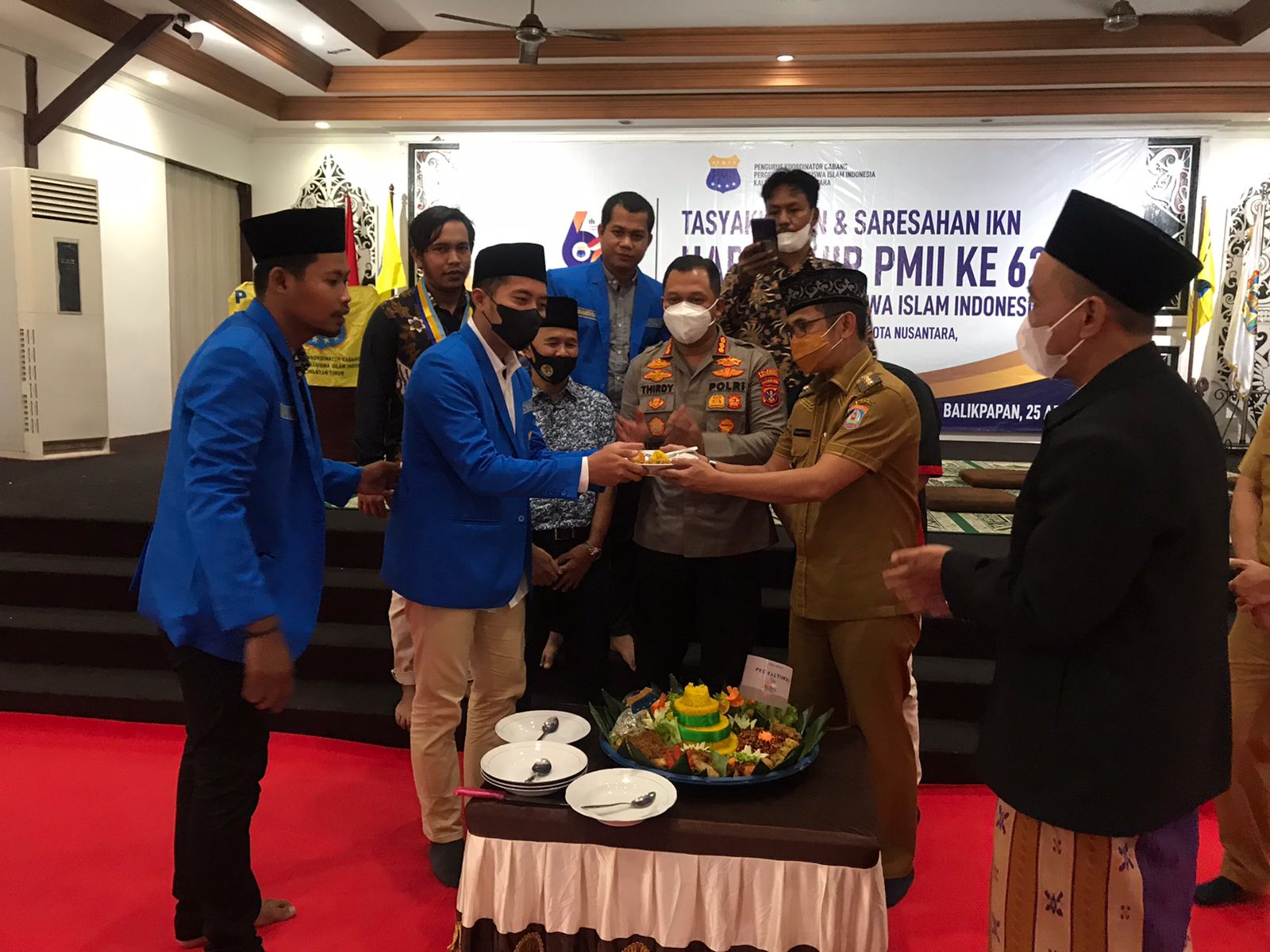KaltimKita.com, BALIKPAPAN - Pergerakan Mahasiswa Islam Indonesia (PMII) berusia 62 tahun. Termasuk Pengurus Koordinator Cabang PMII Kaltim-Kaltara menggelar tasyakuran di Aula Rumjab Wakil Walikota, Senin (25/4/2022). Dihadiri langsung oleh Wali Kota Balikpapan H Rahmad Mas'ud didampingi Kapolresta Balikpapan V Thirdy Hadmiarso.