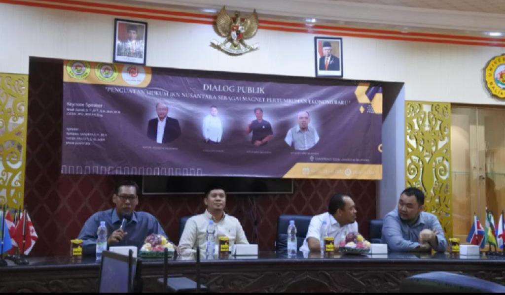Dialog publik yang berlangsung di Confrence Room Universitas Balikpapan, Kamis (28/7/2022) menghadirkan narasumber Ketua Kadin Kota Balikpapan Yaser Arafat, Ketua HIPMI Balikpapan Iwan Wahyudi, dan Ketua LBH Uniba Wawan Sanjaya.