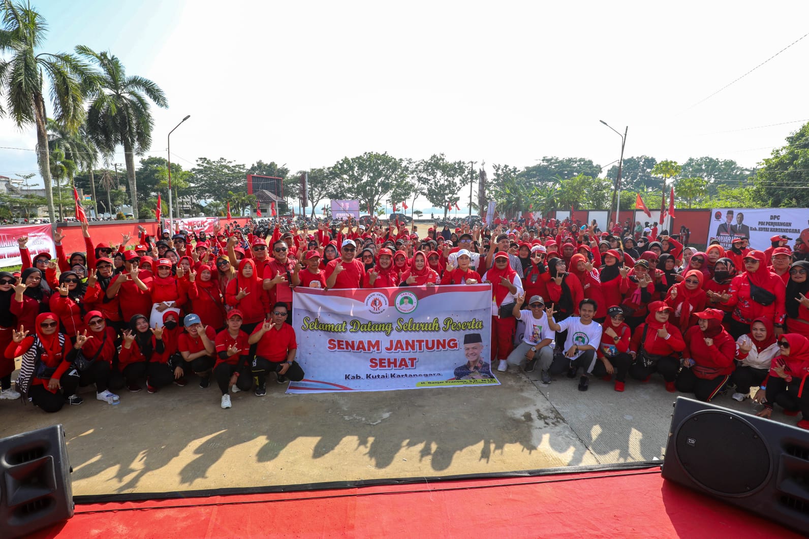 Kaltimkita.com, KUKAR – Ribuan warga mengikuti senam bersama yang diadakan relawan sukarelawan Santri Dukung Ganjar (SDG) Kalimantan Timur (Kaltim) di Timbau, Kecamatan Tenggarong, Kabupaten Kutai Kartanegara (Kukar), Kaltim.