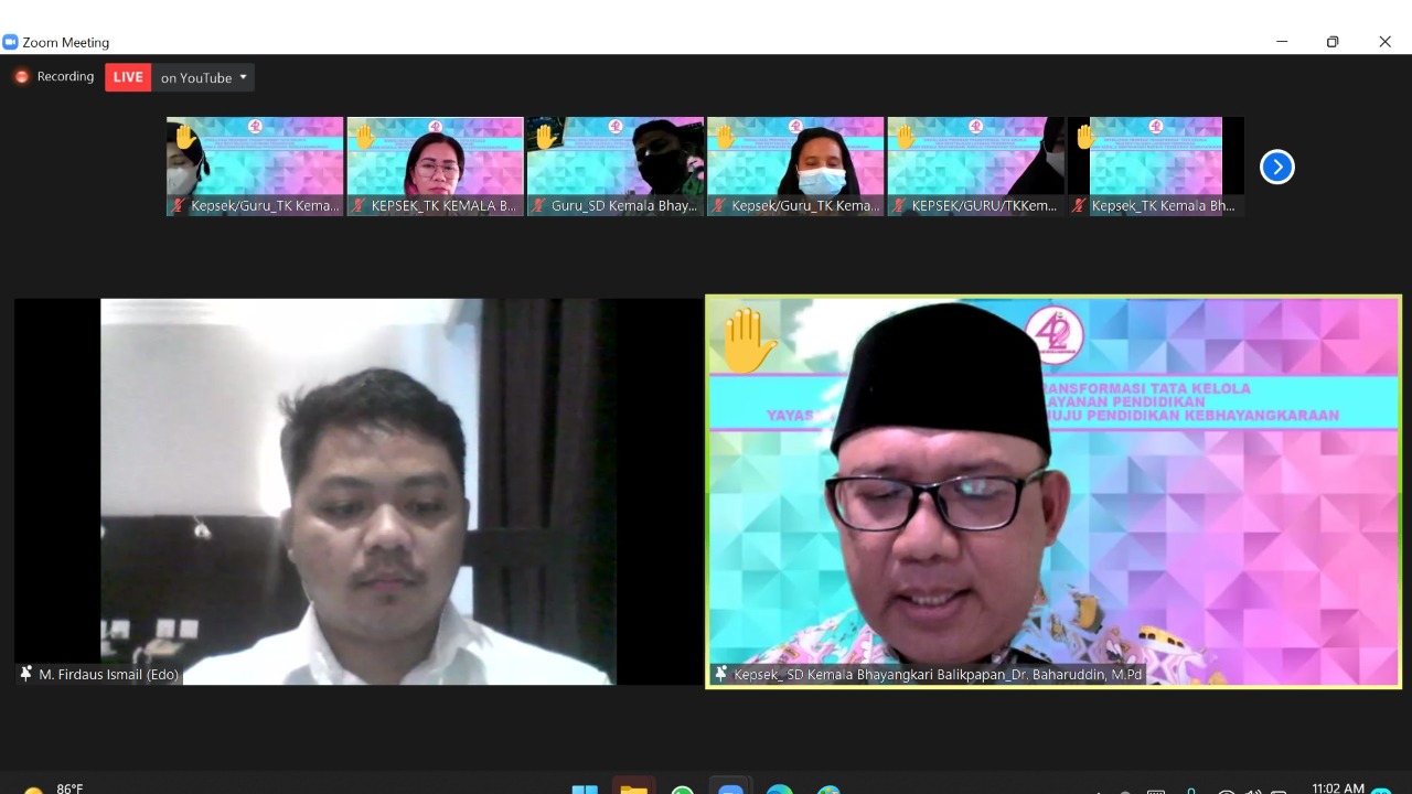KaltimKita.com, BALIKPAPAN - Yayasan Kemala Bhayangkari menggelar zoom meeting kepada seluruh PAUD hingga SMA dan SMK se-Indonesia, Senin (14/3/2022). Sosialisasi perihal program transformasi tata kelola dan revitalisasi pelayanan pendidikan. Salah satu yang berpartisipasi yakni TK dan SD Kemala Bhayangkari Balikpapan.