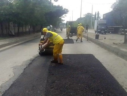“Jadi kalau ada kendaraan bermotor yang melalui jalan-jalan itu, ya kami mencoba melakukan penutupan atau tambal terhadap lubang-lubang itu,” kata Khairudin.