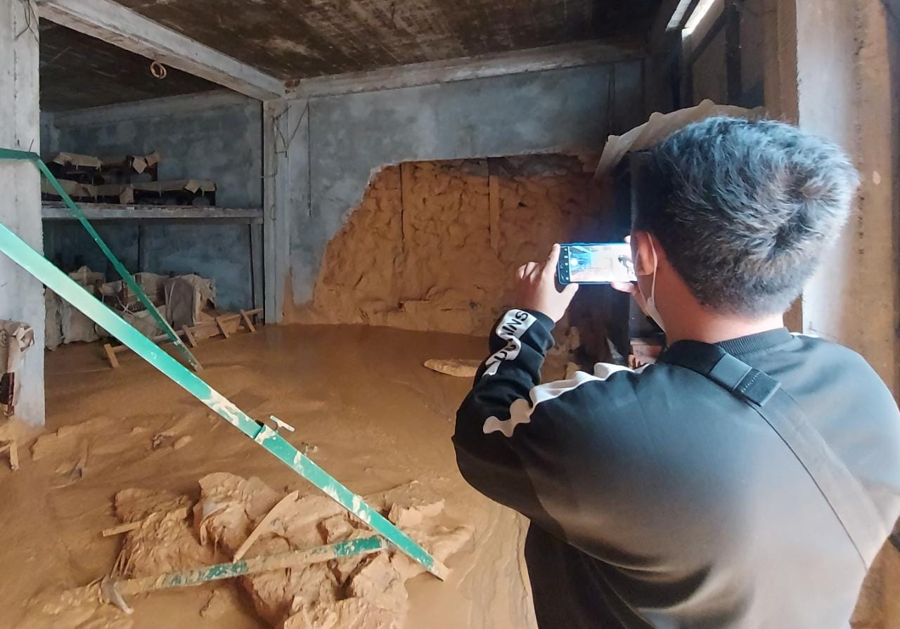 “Pas kami buka gudang, dindingnya sudah jebol, air bercampur lumpur keluar dari dinding. Meubelnya kena lumpur semua, padahal baru didatangkan dari Jawa,” kata Kholil, Minggu (29/1/2023) pagi.