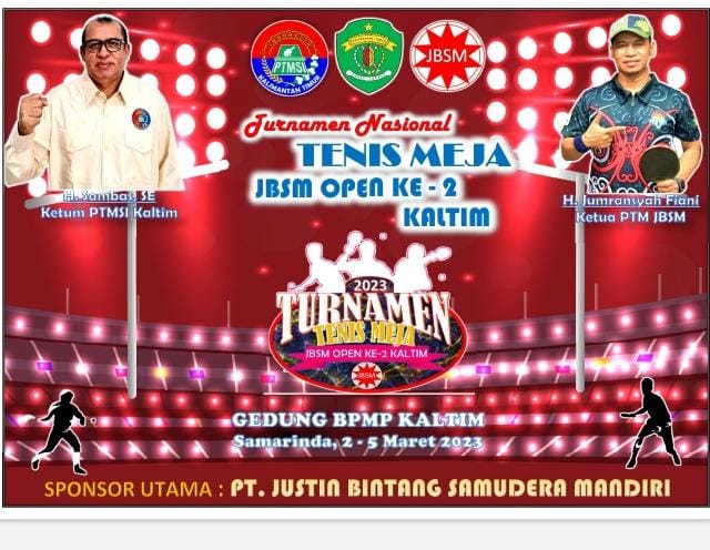 KaltimKita.com, SAMARINDA - Kejuaraan Tenis Meja Justin Bintang Samudera Mandiri (JBSM) cup ke-2 segera bergulir. Berlangsung di Gedung BPMP, Jalan Cipto Mangun Kusumo, Kelurahan Sungai Keledang, Samarinda Seberang, 2-5 Maret 2023 nanti.