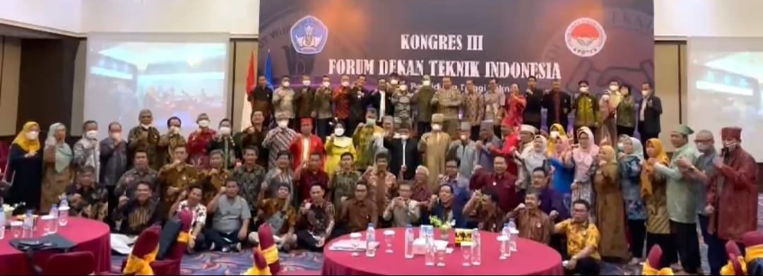 KaltimKita.com - Dirjen Diktiristek Prof Nizam didampingi sekjen FDTI yang juga koordinator SC Kongres III Isradi zainal, waketum FDTI Ngakan Suardana, wasekjen FDTI Zakir Sabara, wakil Bendahara Andi Rusdin, ketua wilayah timur Arsyad dan wilayah tengah Hendri Budi, Dekan FT Unkhair Litha dan mantan Dekan FT Unkhair Ahmad Seng melantik Pengurus Forum Dekan Teknik Indonesia (FDTI) periode 2021-2023 di Hotel Sahid Bela, Ternate 7 November 2021.