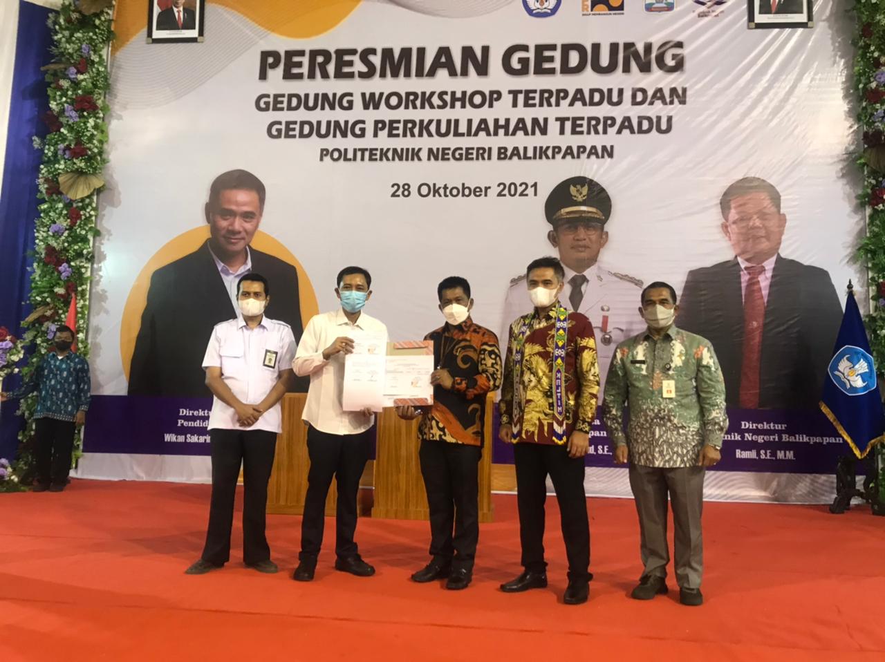 KaltimKita.com, BALIKPAPAN - Gedung Workshop Terpadu akhirnya berdiri. Kamis (28/10/2021) secara langsung diresmikan oleh Direktur Jenderal Pendidikan Vokasi Kemendikbudristek RI, Wikan Sakarinto, S.T., M.Sc., Ph.D. Tak hanya gedung workshop juga sekaligus peresmian perkuliahan terpadu.