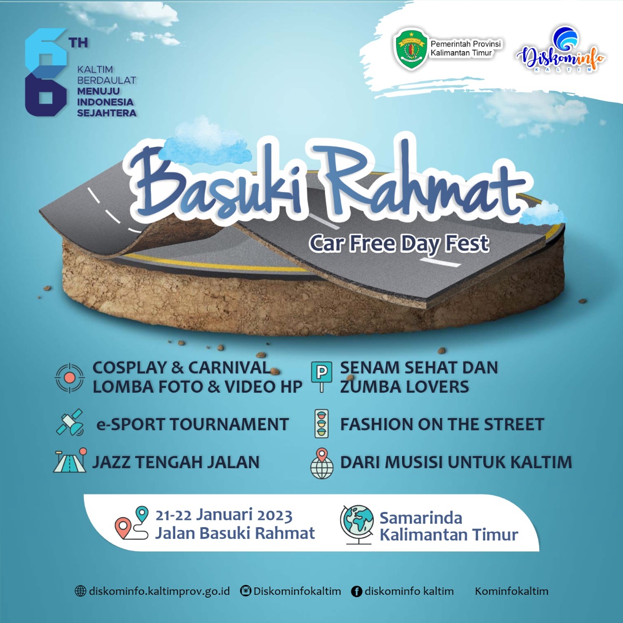"Hanya disepanjang jalan Basuki Rahmat yang jalur perkantoran saja ditutup, untuk menambah lokasi car free day di kota Samarinda buat berolah raga, namun karena ada moment khusus HUT maka kami minta izin selama weekend nanti tanggal 21-22 Januari 2023, untuk merayakan HUT Pemprov Kaltim dan juga Pemkot Samarinda," kata Muhammad Faisal Kadiskominfo Provinsi Kaltim.