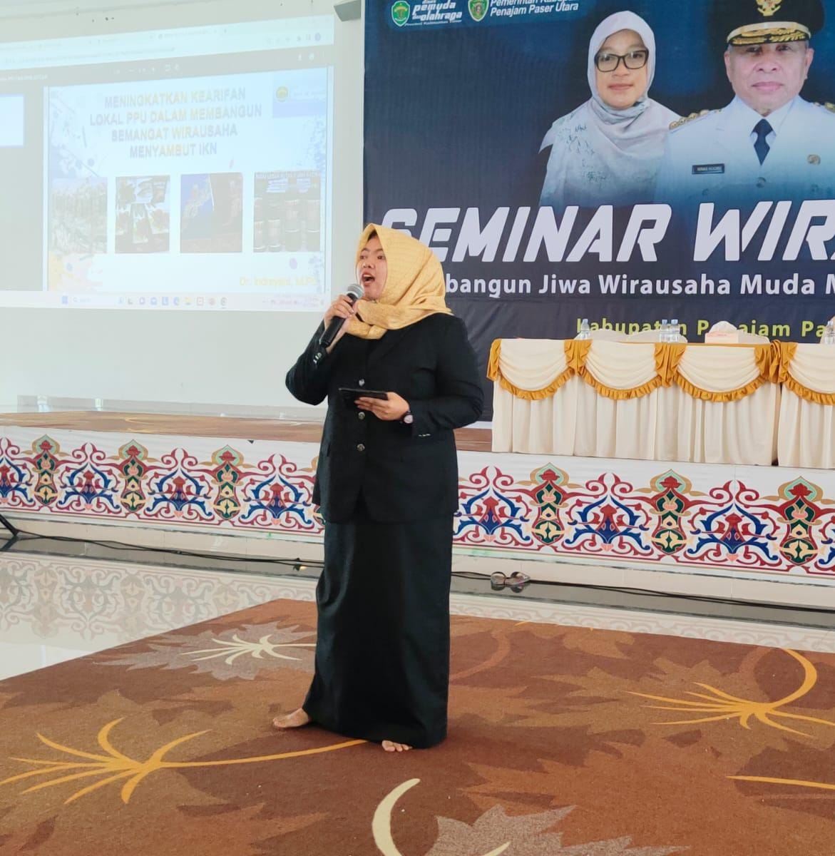 Pada kegiatan ini, Dr.Indrayani mendapat kesempatan membawakan materi tentang meningkatkan kearifan lokal PPU dalam membangun semangat wirausaha menyambut IKN. "Beberapa waktu lalu, saya diminta kembali menjadi narasumber untuk kegiatan wirausaha muda di Kabupaten Penajam Paser Utara. Saya sangat antusias, sebab konsen saya memang membahas tentang kewirausahaan. Selain menjadi dosen kewirausahaan, saya juga berupaya memfasilitasi kegiatan kewirausahaan maupun umkm yang ada disekitar saya," terang Dr.Indrayani.