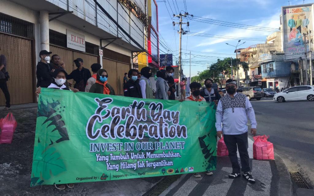 Mereka juga meminta para pengendara untuk matikan lampu sejenak. Aksi tersebut untuk memperingati hari bumi tahun 2022.