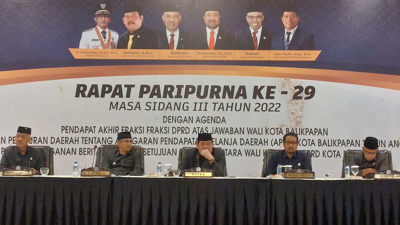 Kali ini Peripurna dilakukan secara tata muka dengan agenda penyampaian pendapat akhir Fraksi-fraksi DPRD atas jawaban wali kota Balikpapan terhadap Rancangan Peraturan Daerah tentang Anggaran Pendapatan Belanja Daerah (APBD) Kota Balikpapan Tahun Anggaran (TA) 2023.