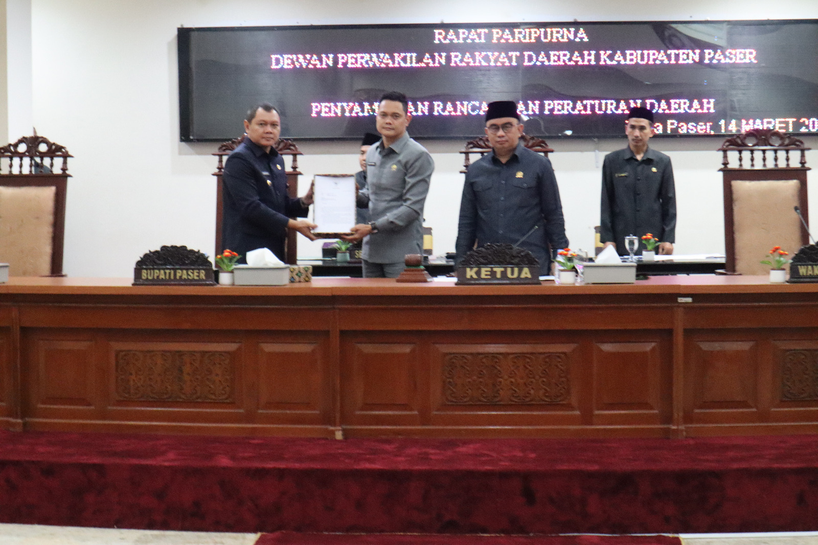 Kaltimkita.com - TANA PASER - Rapat paripurna DPRD Paser berupa agenda penyampaian rancangan peraturan daerah (raperda) oleh Pemkab Paser sebanyak empat raperda, dipertanyakan dan disampaikan pandangan oleh tiap Fraksi di DPRD Paser.