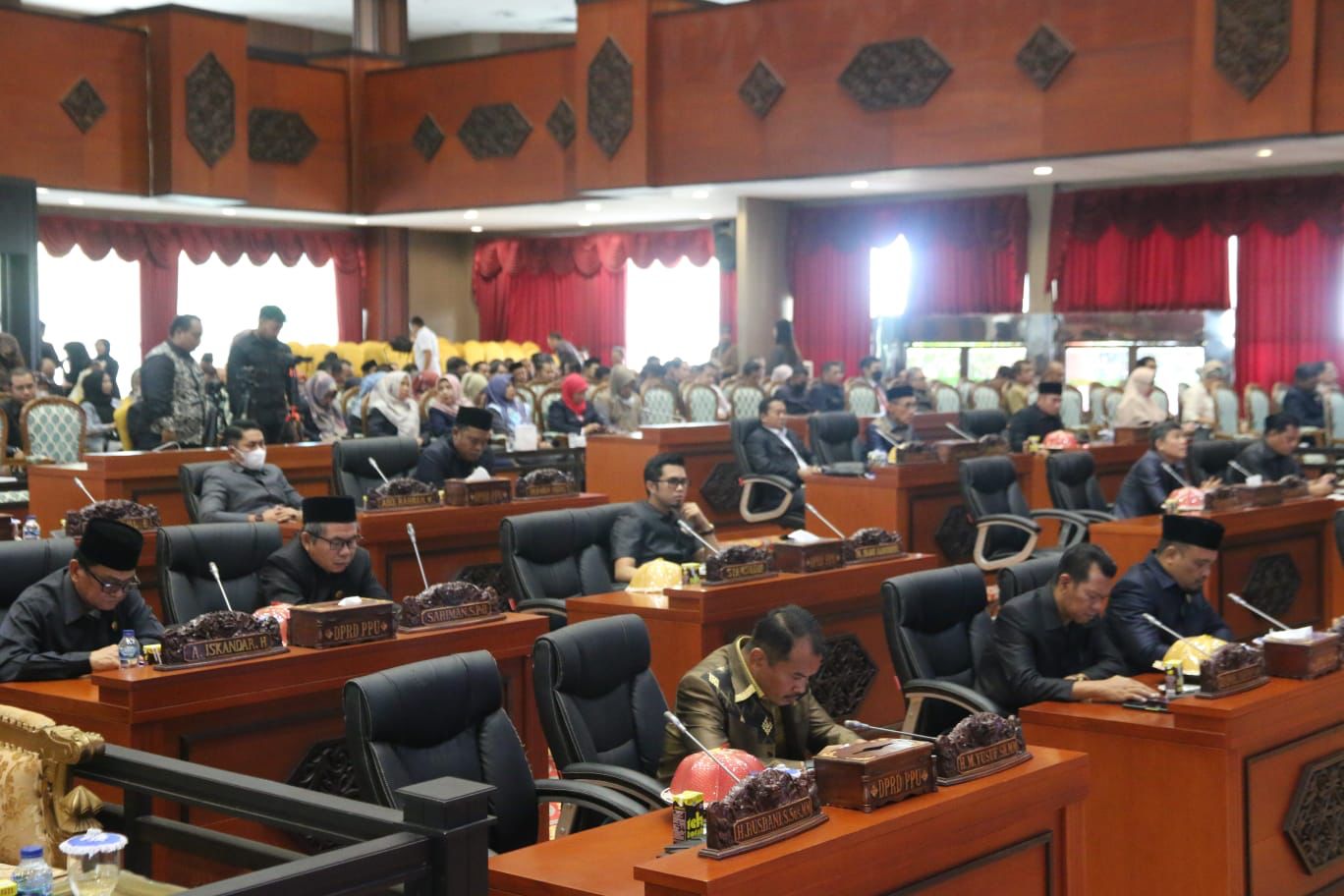 Rapat paripurna yang dipimpin langsung Ketua DPRD PPU Syahrudin M Noor dihadiri Bupati PPU Hamdam, Sekda PPU Tohar, para pejabat di lingkungan Pemkab PPU, Forkopimda dan tamu undangan lainnya.