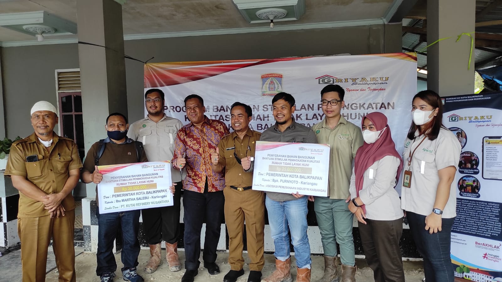 Dua warga penerima stumulan rehab rumah layak huni diberikan dari CSR KRN dan APIK masing-masing Rp25 juta dan Rp30 juta. Bahan bangunan diberikan berupa semen, batako ringan, pasir, kayu, kusen, pintu, atap seng.