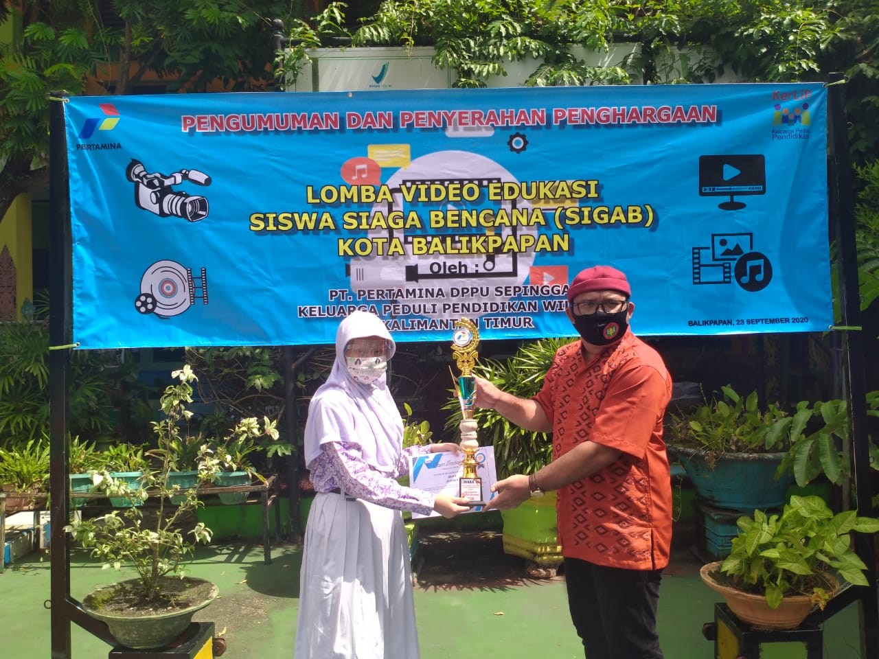 Penyerahan hadiah lomba video edukasi tentang siaga bencana.
