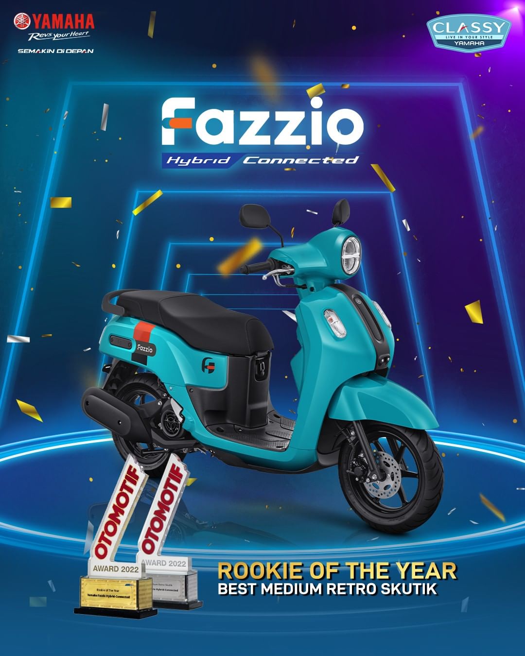 Dari hasil penilaian oleh dewan juri, motor kategori Classy Yamaha yaitu Fazzio Hybrid-Connected layak dinobatkan sebagai Rookie of The Year. Pendatang baru yang menjadi kejutan besar dunia otomotif roda dua Tanah Air di awal tahun ini tersebut, mampu menunjukkan prestasi cemerlang seiring booming motor ini di market Indonesia.