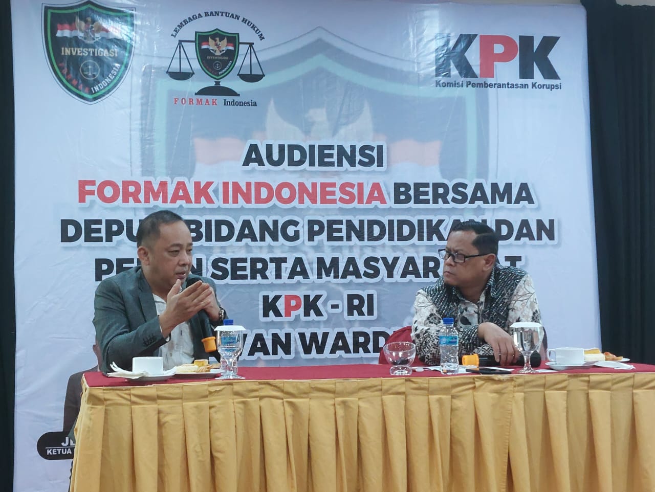 Jerico menambahkan, ia mengaku tadinya menggelar kegiatan Audiensi bersama ketua KPK Komjen Pol. Firli Bahuri. Namun dikarenakan berhalangan, maka Deputi Bidang Dikpermas KPK-RI, Wawan Wardiana yang menggantikan.