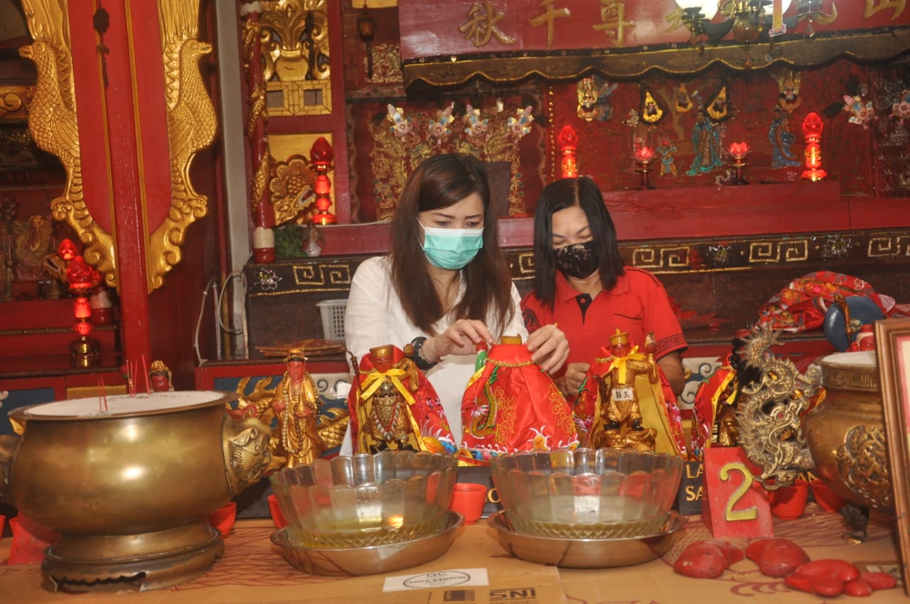 Setelah dimandikan, patung dewa dewi dipakai baju baru. (Kaltimkita.com)