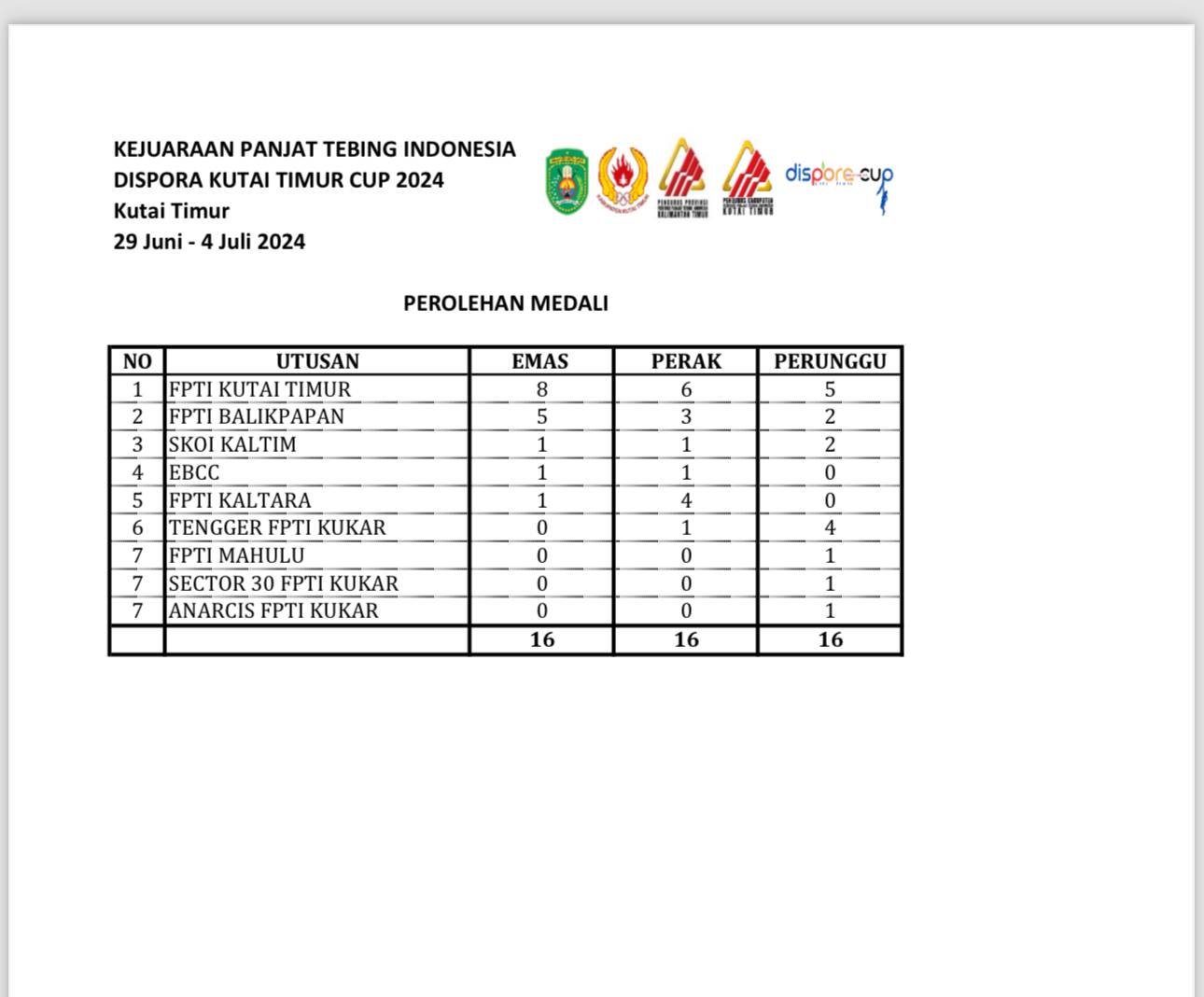 Ketua Pengcab Federasi Panjat Tebing Indonesia (FPTI) Balikpapan, Jundi Rahmad Danny mengapresiasi perjuangan para atlet, pelatih dan offisial. Hasil ini sudah sesuai target yang diusung dengan berada di tiga besar.