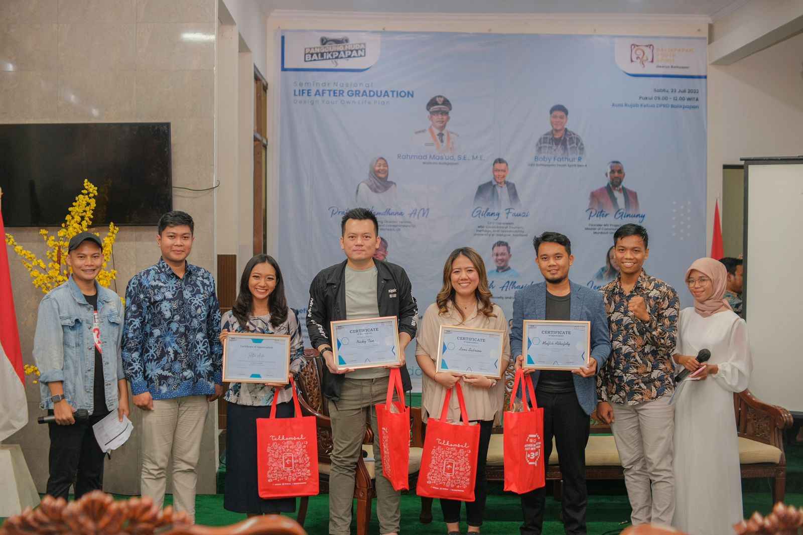 Kaltimkita.com, BALIKPAPAN – Mengusung semangat #JiwanyaBalikpapan untuk berbagi bahtera kebaikan di Seminar Nasional “Life After Graduation” bertajuk Design Your Own Life Plan yang diselenggarakan pada hari Sabtu (23/7/2022) lalu di Aula Rujab Kantor DPRD, Balikpapan Youth Spirit sebagai society enabler konsisten berupaya memberdayakan potensi Pemuda Balikpapan untuk dapat berperan aktif dan positif terhadap kemajuan bangsa khususnya kota Balikpapan. Seminar nasional tersebut di hadiri oleh Kepala Dinas Pemuda, Olahraga, dan Pariwisata Kota Balikpapan dr. C.I Ratih Kusuma W, Founder Balikpapan Youth Spirit Sulthan Nur Hidayatullah, CEO Balikpapan Youth Spirit Gen 4 Boby Fathur Rachman, serta Perwakilan BEM, Duta, dan Komunitas dari Kalimantan dan Luar Kalimantan.