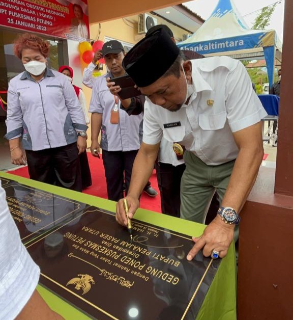 Kaltimkita.com, PENAJAM - Bupati Penajam Paser Utara (PPU) Ir. H. Hamdam melakukan penandatanganan prasasti sekaligus meresmikan secara langsung gedung Pelayanan Obstetri Neonatal Emergensi Dasar (PONED), bertempat di Puskesmas Petung, kecamatan Penajam, Rabu (25/01/2023).