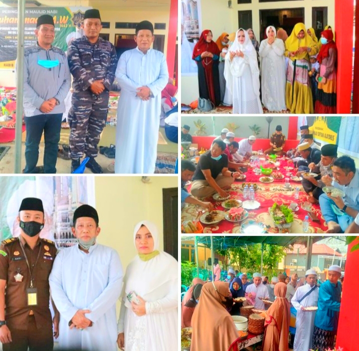 KaltimKita.com, KUTAI TIMUR – Pada pelaksanaan peringatan Nabi Besar Muhammad SAW, 1443 H yang dilangsungkan di kediaman pribadi Wakil Ketua Komisi C (DPRD) Kutim Gang Kedung Rejo, Jalan Kalimutu Kecamatan Sangatta Utara Kabupaten Kutai Timur, Rabu (3/11/2021). Acara tersebut dihadiri hampir 400 tamu undangan.