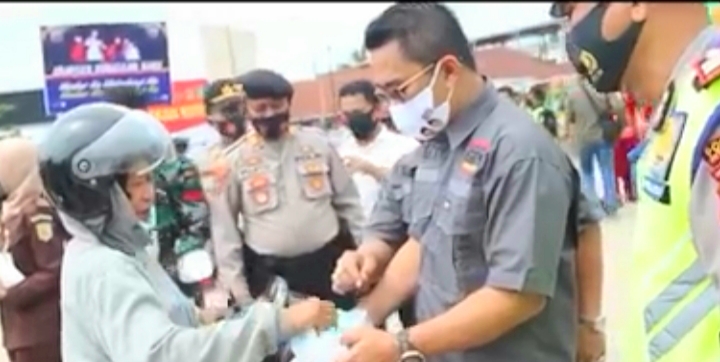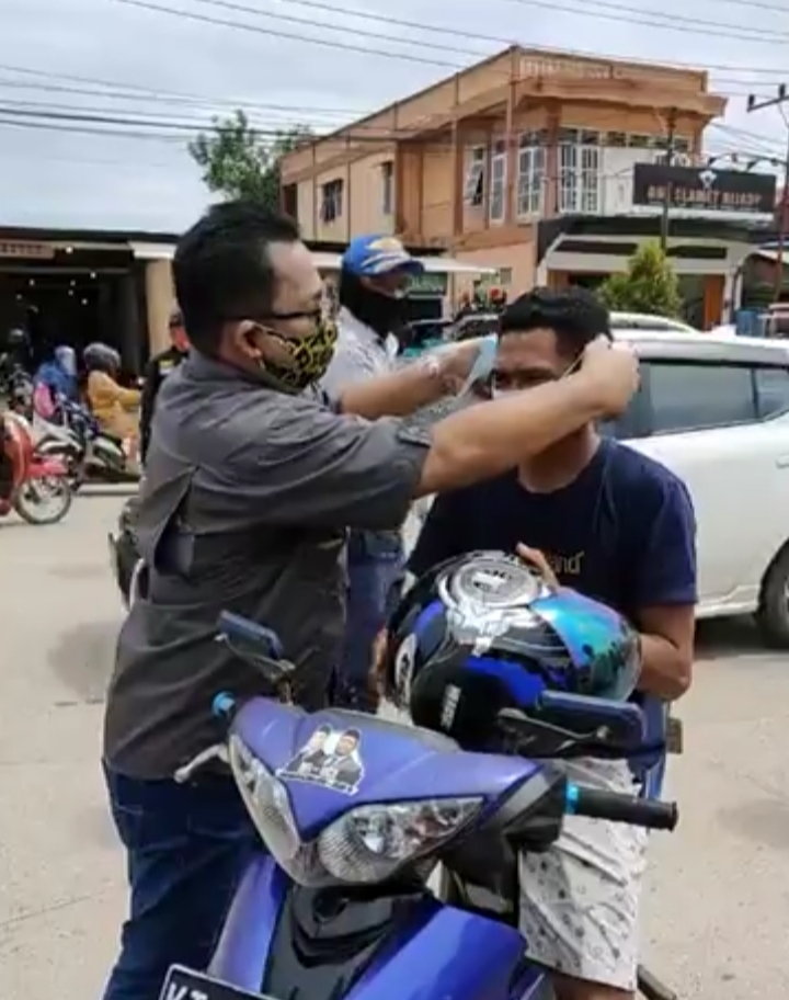 Cawabup Kutim, MaKin jaga masyarakat pakaikan masker ke pengendara sepeda motor.