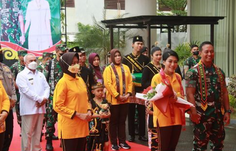 Kedatangan Panglima TNI yang didampingi istri Hetty Andika Perkasa beserta jajaran Mabes TNI ke Kota Minyak dalam rangka kunjungan kerja untuk meninjau dan melihat langsung pelaksanaan latihan bersama (latma) Garuda Shield-16 2022 Matra Darat di Yonif R 600 Modang Kodam VI Mulawarman di Kelurahan Manggar.