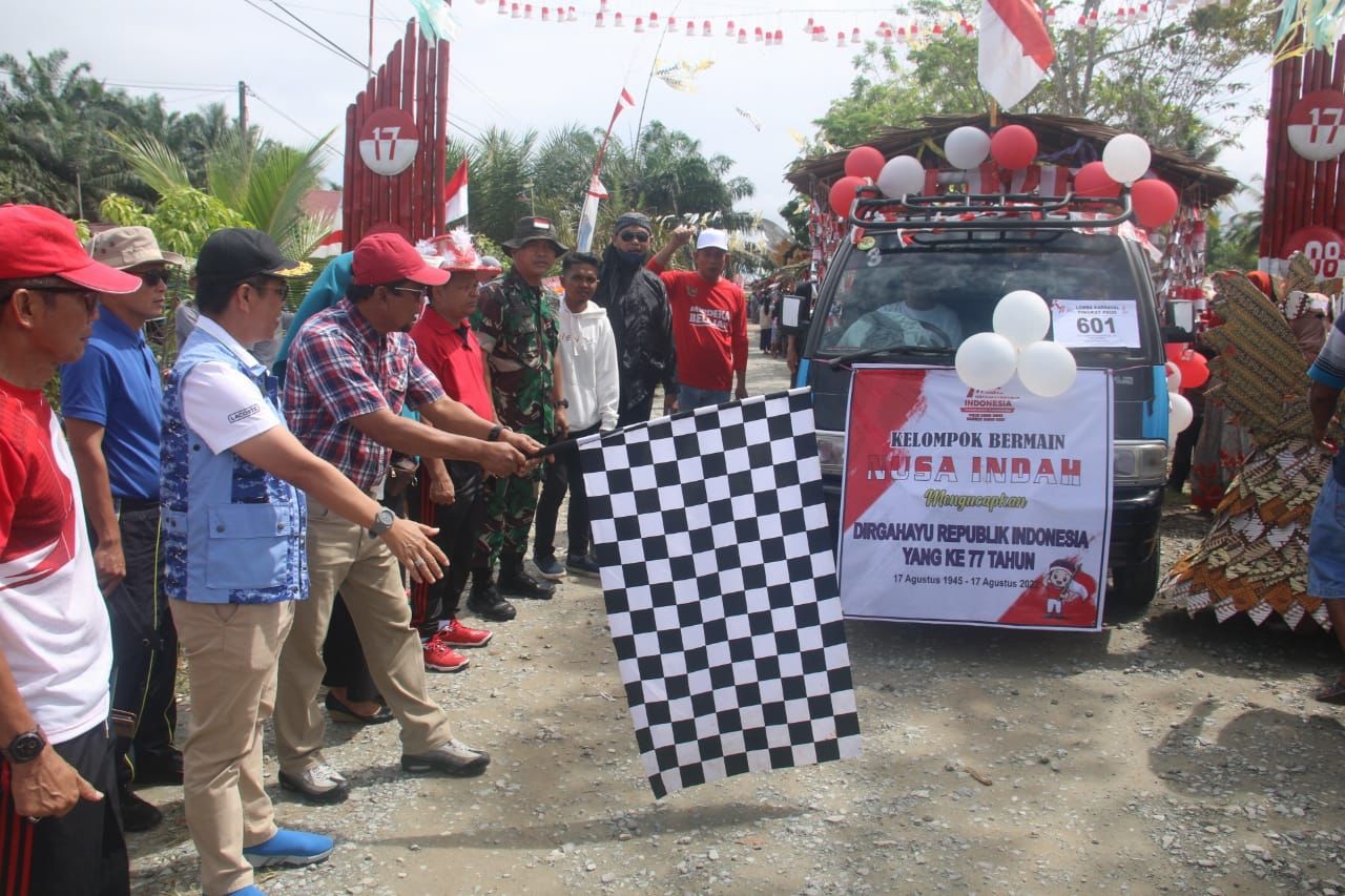 Kaltimkita.com, PENAJAM – Ratusan warga Kecamatan Waru, Kabupaten Penajam Paser Utara (PPU) yang terdiri dari siswa-siswi sekolah dan masyarakat umum antusias mengikuti dan memeriahkan karnaval budaya dalam rangka HUT RI ke-77. Hampir semua peserta menggunakan kostum unik yang menarik perhatian pengunjung, Minggu, (28/8/2022) siang.