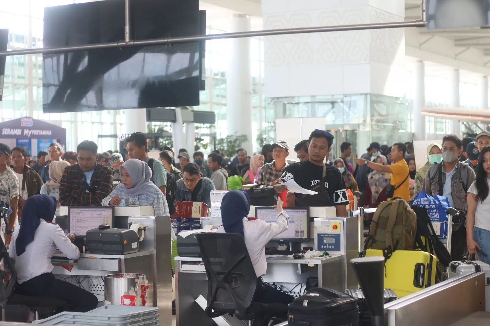 Menjelang dan pasca Lebaran, Bandara SAMS termasuk salah satu bandara tersibuk di Indonesia. Arus penumpang yang datang dan berangkat sempat mencapai 23 ribu orang sehari. Bayangkan. Sebagian memang pekerja dari pembangunan kilang Pertamina (RDMP) dan IKN.