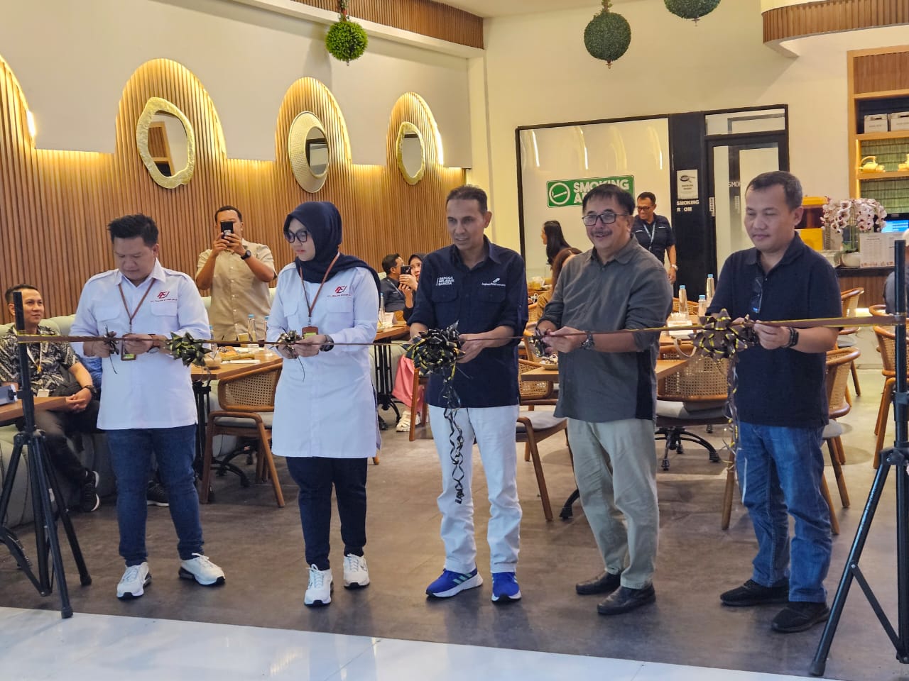 Pengguntingan pita peresmian Han Soe Tiam (Coffee, Bakery dan Eatery) di Bandara SAMS Sepinggan.