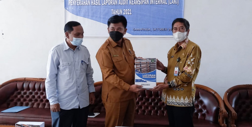 Kaltimkita.com, Kutai Kartanegara - Sekretaris Daerah Kabupaten Kutai Kartanegara Sunggono menyerahkan Hasil Laporan Audit Kearsipan Internal (LAKI) tahun 2021 kepada Kepala Perpustakaan dan Kearsipan Provinsi Kaltim Eloka. Penyerahan dilakukan di Aula Kantor Perpustakaan dan Kearsipan Provinsi Kalimantan Timur, Selasa (18/10).