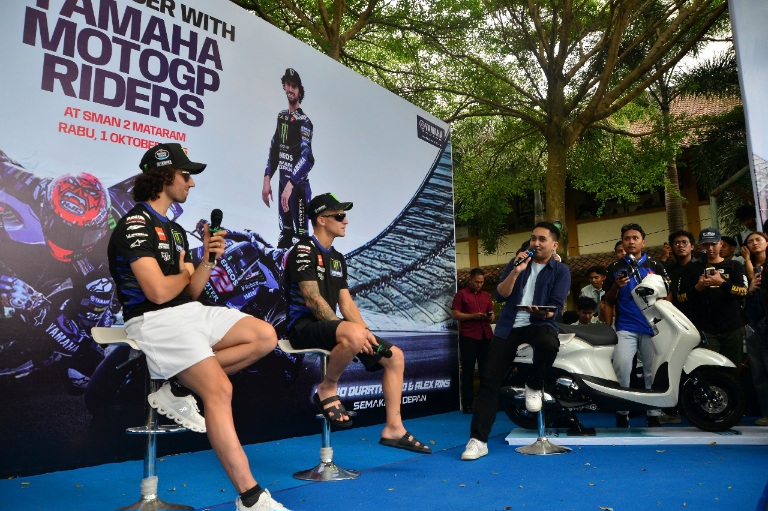 Selain visiting SMA Negeri 2 Mataram, Yamaha Indonesia juga mengajak Fabio Quartararo dan Alex Rins jumpa puluhan fans setia yang selalu memberikan dukungan buat keduanya. ”Tahun ini kami mencoba mengadakan acara yang lain dari sebelumnya, untuk Fabio Quartararo dan Alex Rins merasakan kondisi berbeda berada di sekolah dengan para pelajar yang juga mengenal keduanya sebagai rider Yamaha MotoGP populer. Experience ini diapresiasi dengan meriah oleh siswa-siswi SMA Negeri 2 Mataram, yang memanfaatkan kesempatan berdekatan dengan duo pembalap kelas dunia Yamaha MotoGP. Kami juga membawa Wahyu Nugroho dan M Faerozi yang dapat menjadi inspirasi meraih kesuksesan berkarir di bidang yang ditekuni dengan optimal. Pada sesi lainnya kami pun memberikan waktu bagi para penggemar bertemu langsung dengan Fabio Quartararo dan Alex Rins. Peluang ini digunakan fans sebaik mungkin untuk merasakan kedekatan yang tidak selalu bisa didapatkan,” tambah Wahyu Rusmayadi, Manager Motorsport PT. Yamaha Indonesia Motor Manufacturing (YIMM). (*)
