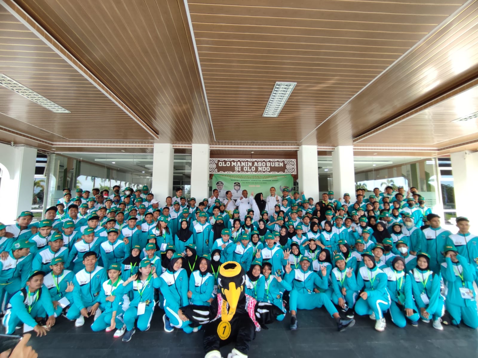 KaltimKita.com, TANA PASER - Ketua DPRD Paser Hendra Wahyudi mengikuti momen pelepasan atlet dan kontingen Kabupaten Paser yang akan berlaga di Pekan Olahraga Pelajar Daerah (Popda) ke XVI (16) Kaltim yang dihelat di Paser.