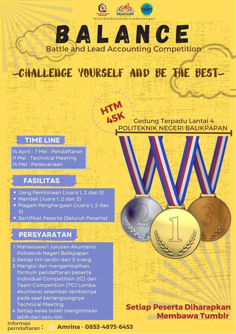 KaltimKita.com, BALIKPAPAN - Himpunan Mahasiswa (HMJ )Akuntansi akan menggelar Battle and Lead Accounting Competition (Balance). Lomba ini berencana akan terlaksana, Sabtu (14/5/2022) pekan depan di Gedung Terpadu Lantai 4.
