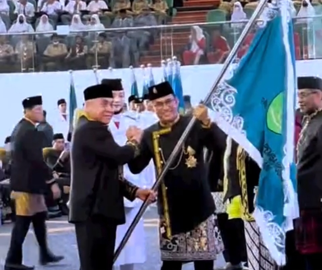 "Selamat kepada bupati dan Walikota yang telah menerima Panji Keberhasilan Pembangunan,"ucap Gubernur Isran